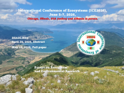 The International Conference of Ecosystems Organizational Committee is pleased to announce the next edition of the International Conference of Ecosystems, which will be held June 5-7, 2026, online from the USA, Chicago, Illinois, and Tirana, Albania, in person. On behalf of the organizing committee, I would like to kindly remind you about our invitation to the 16th International Conference of Ecosystems, IJEES journal organized ICE2026, June 5-7, 2026, Online from USA, Chicago, Illinois, and Tirana, Albania in person, jointly by University of Maryland College Park, ESSIC, MD, USA; Environmental Engineering Department, Engineering and Natural Science Faculty, Konya Technical University, Konya, Turkey; Polytechnic University of Torino, Italy; Department of Energy Systems Engineering, Faculty of Technology, Kocaeli University, Kocaeli, Turkey; Department of Energy, Polytechnic University of Tirana, Albania; Necmettin Erbakan University, Faculty of Engineering and Architecture, Department of Environmental Engineering, Konya, Turkey; Environment and Health Association, Tirana, Albania; JIEAS, Konya Technical University, Konya, Turkey, June 5-7, 2026, online from USA, Chicago, Illinois and Tirana, Albania in Person.
